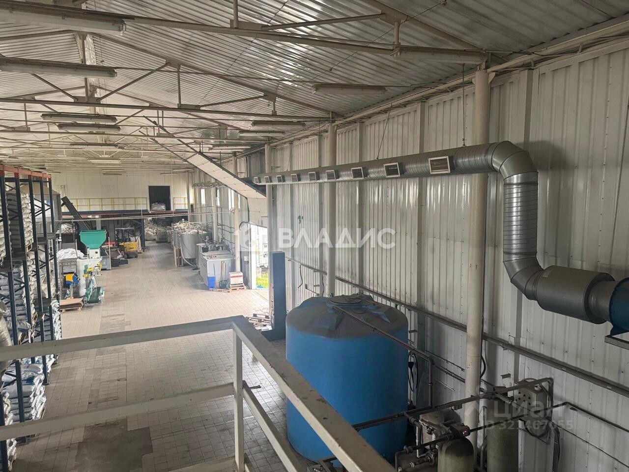 Основные характеристики: Общая площадь: 1442 м² Площадь земельного участка: 81 сотка (в собственности, огорожен забором) Производственный цех 1300 м² Котельная 142 м²
