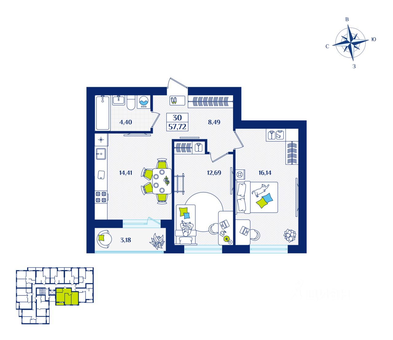 Общая площадь57,72 м2