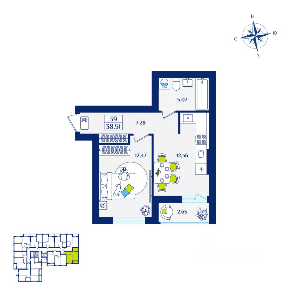 Общая площадь38,51 м2