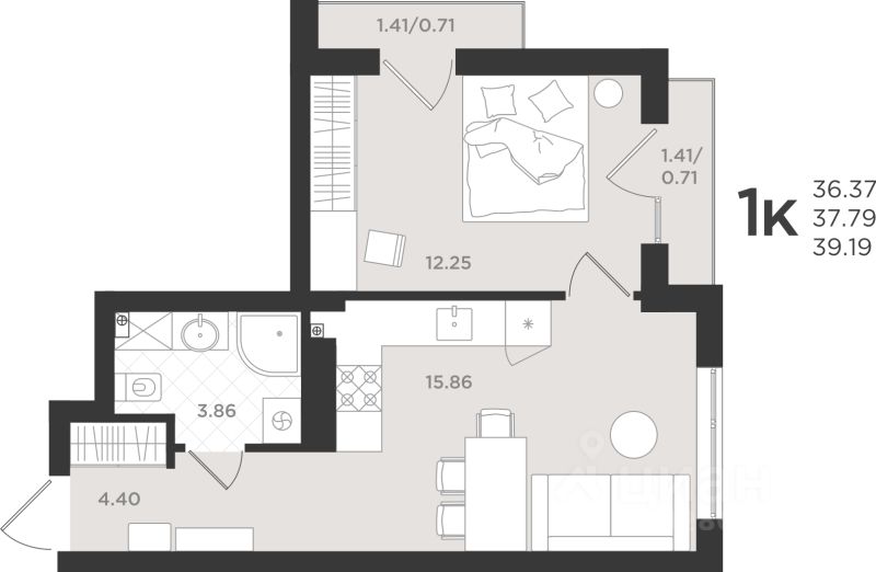 Общая площадь37,79 м2
