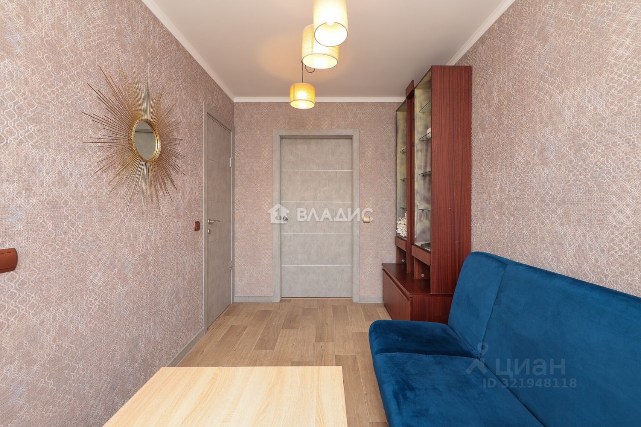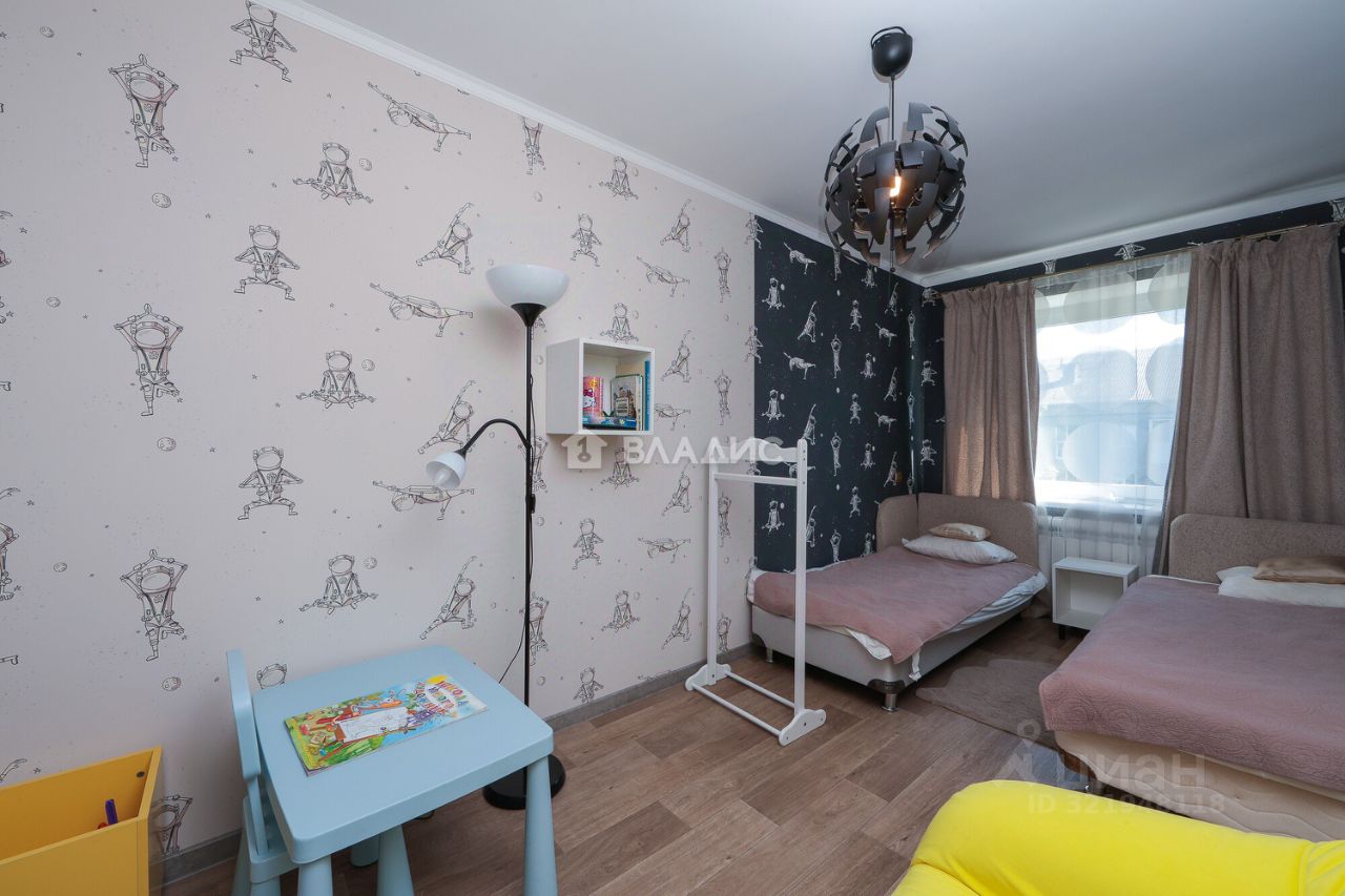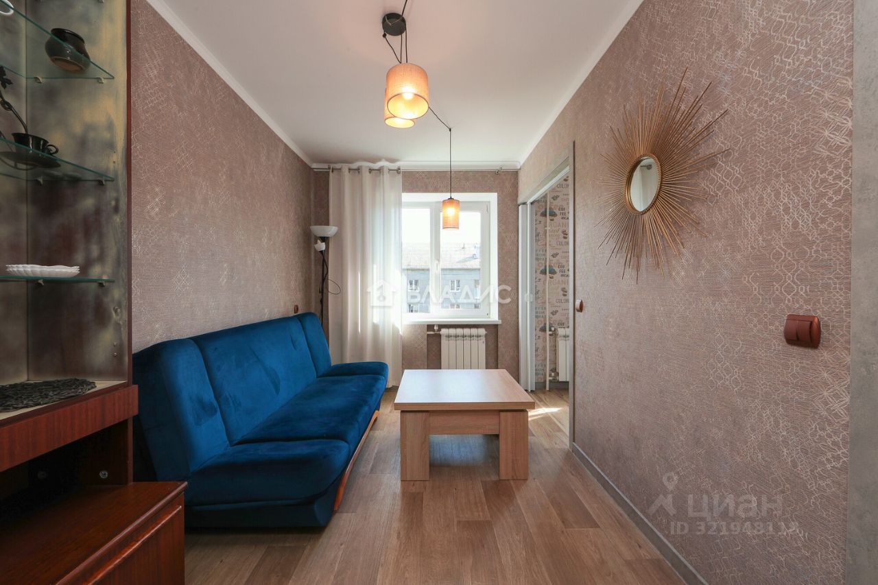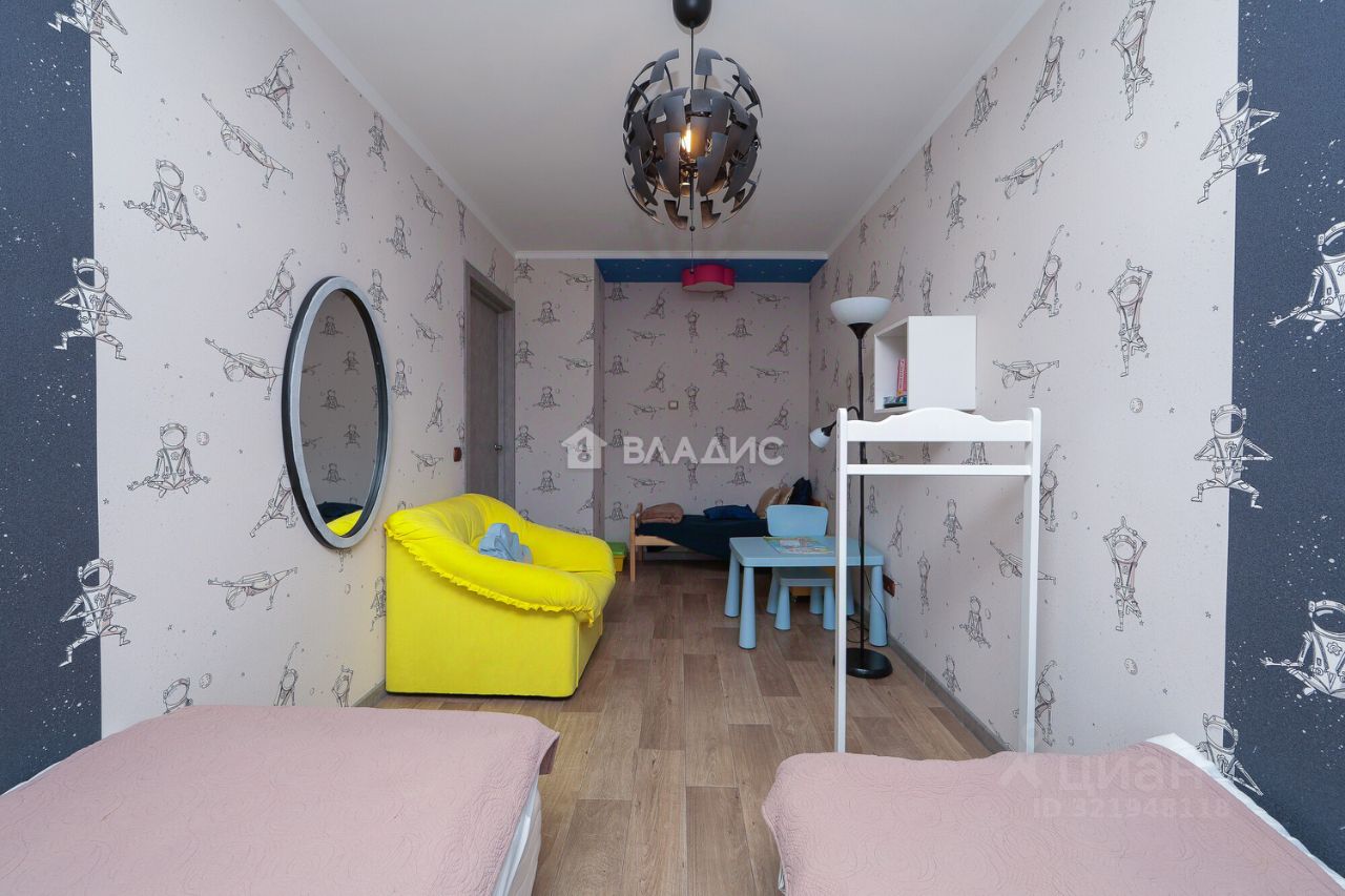 Трёхкомнатная квартира общей площадью 60,1 кв. м расположена на пятом этаже пятиэтажного дома 1967 года постройки. Центральное отопление, домофон, интернет. Жилая площадь составляет 45 кв. м площадь кухни — 6 кв. м. в высота потолков — 2,5 м.