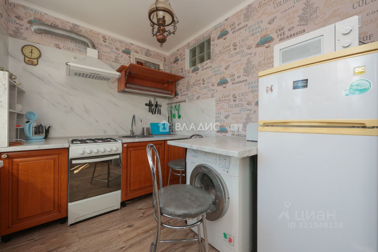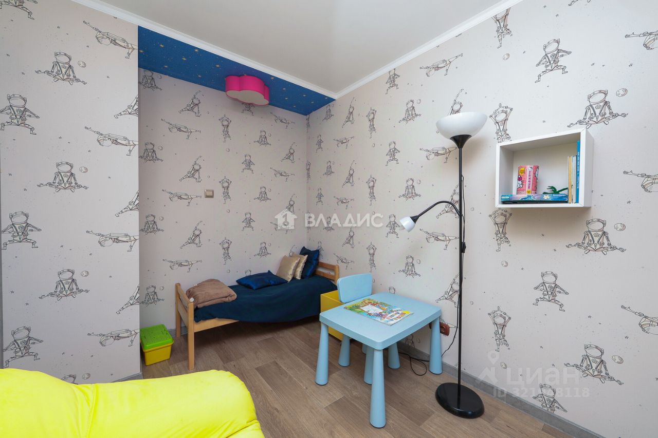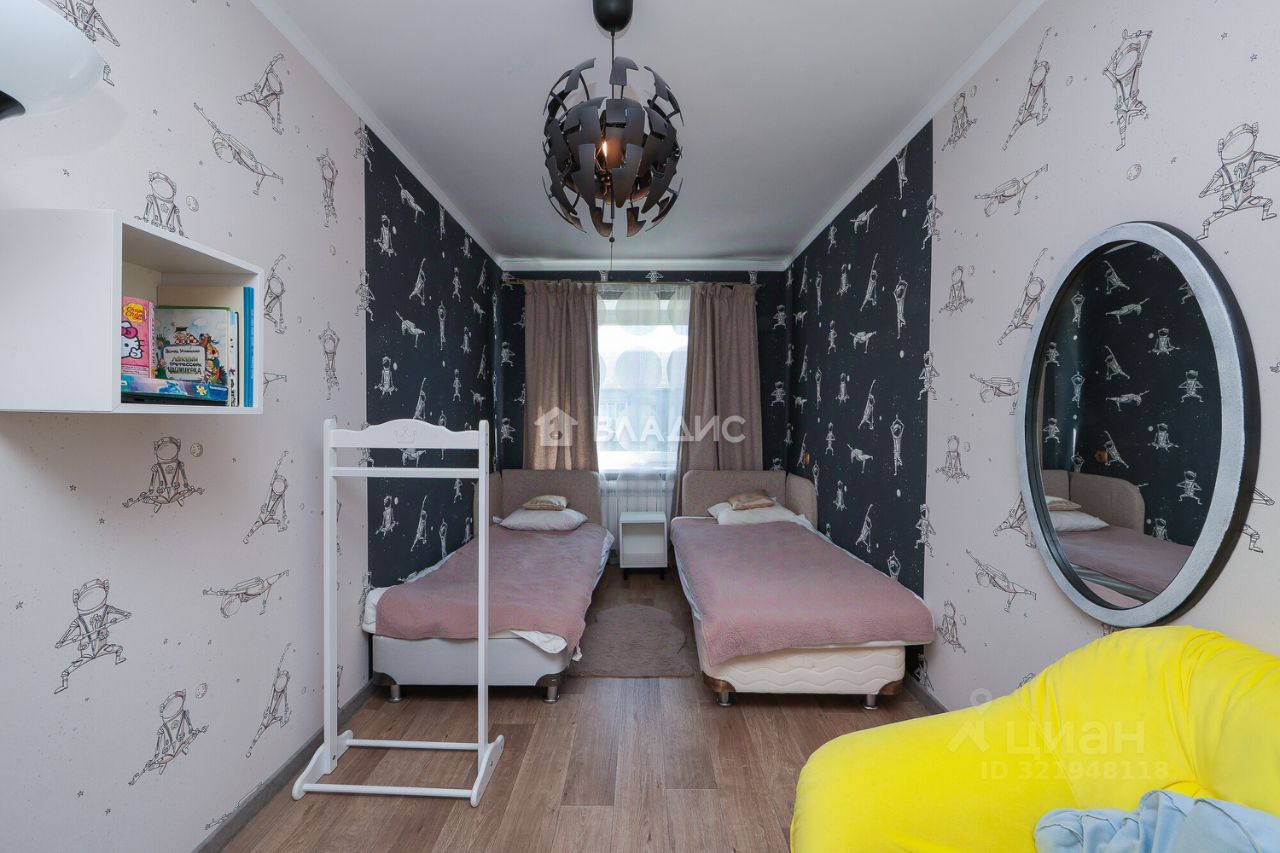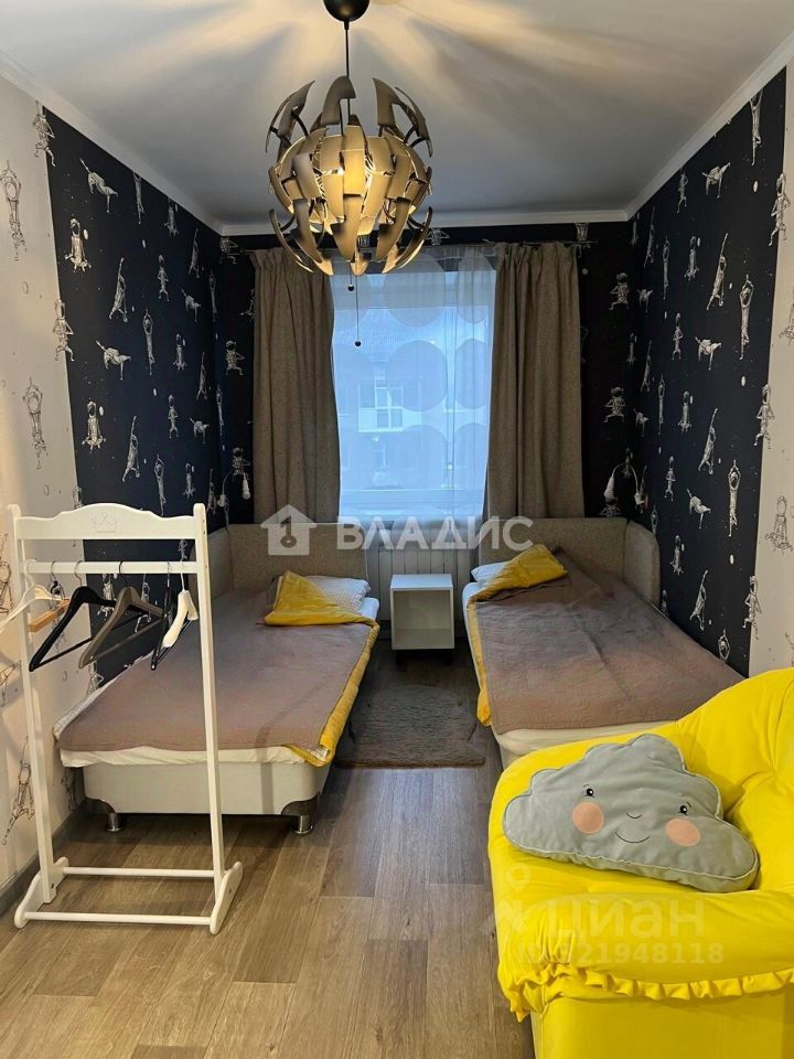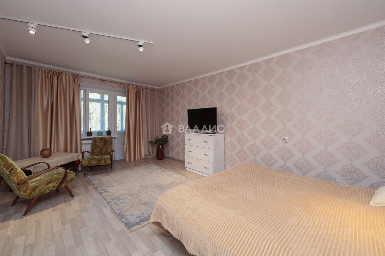 Трёхкомнатная квартира общей площадью 60,1 кв. м расположена на пятом этаже пятиэтажного дома 1967 года постройки. Центральное отопление, домофон, интернет. Жилая площадь составляет 45 кв. м площадь кухни — 6 кв. м. в высота потолков — 2,5 м.