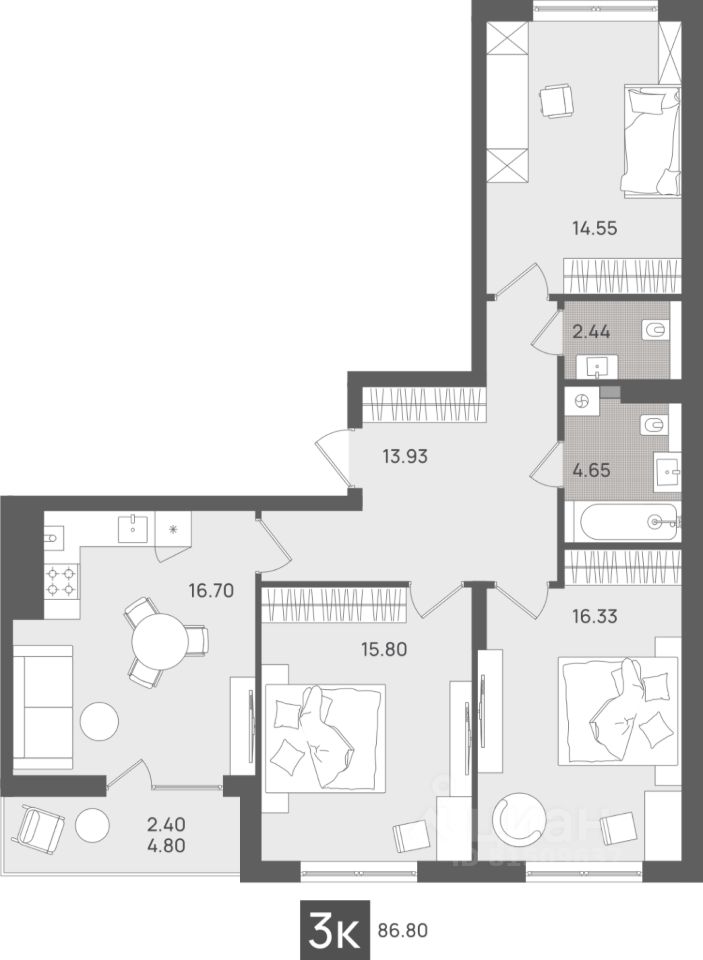 Общая площадь86,8 м2