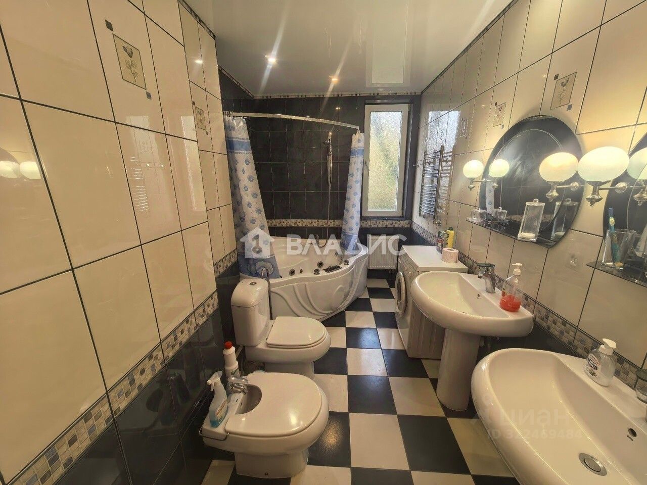 В санузле имеется ванна джакузи, биде, две раковины.