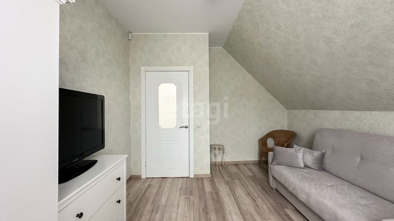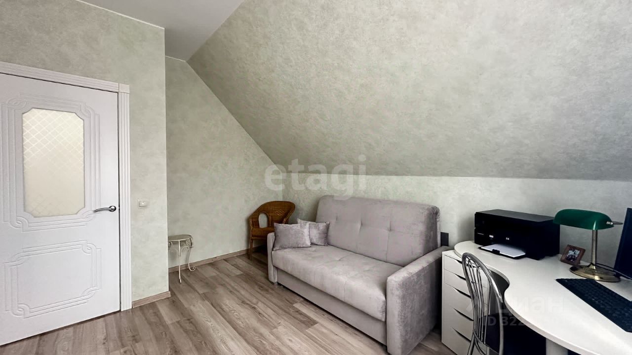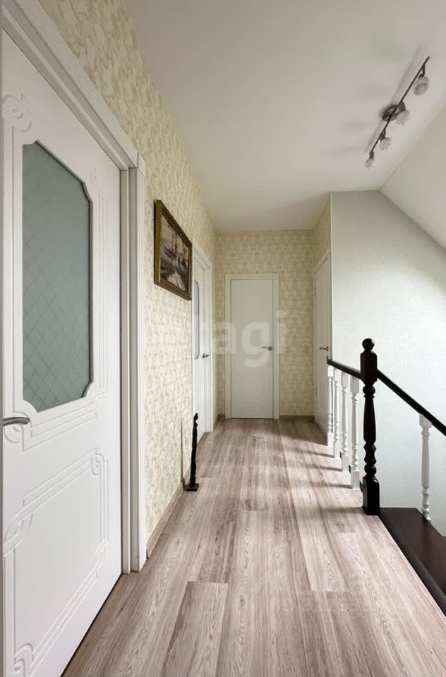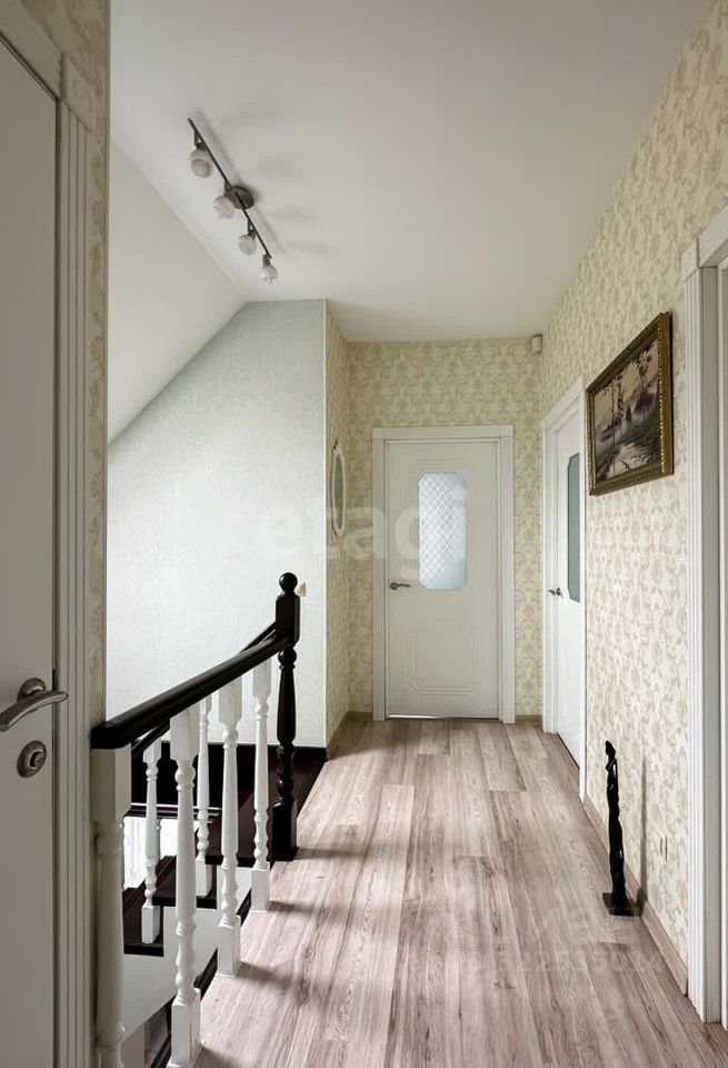 На второй этаж ведет полноразмерная деревянная лестница. Есть дополнительный свет, благодаря мансардному окну. Весь пол выполнен ламинатом высокого класса износостойкости. Потолки натяжные, на стенах обои.