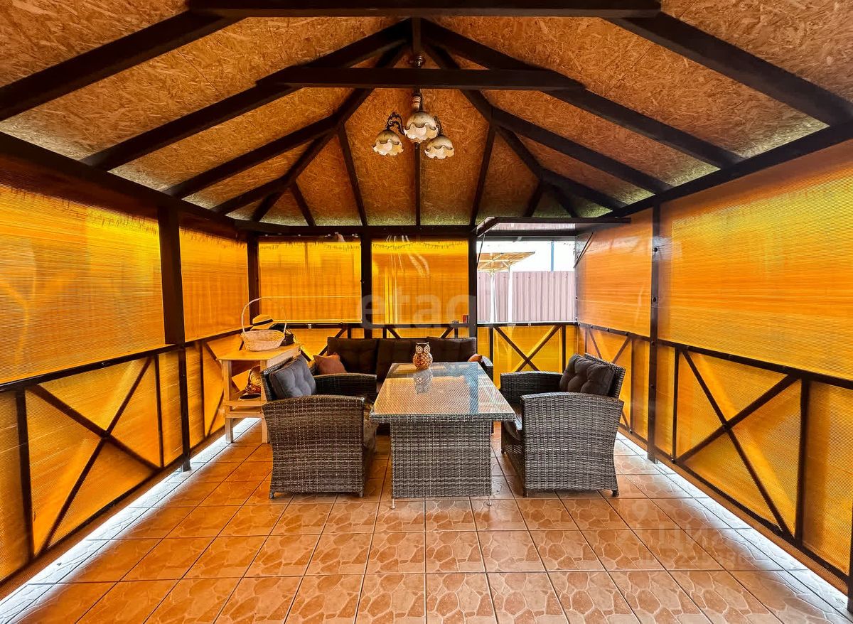 • функциональная кухня — 10,5 кв.м. • просторная гостиная с зоной столовой — 42 кв.м. • совмещенный санузел с ванной — 7 кв.м. • прямой выход на крытую террасу с ротанговой мебелью — 16 кв.м. • вспомогательное помещение для котла, насоса и водоподготовки с отдельным входом с улицы.