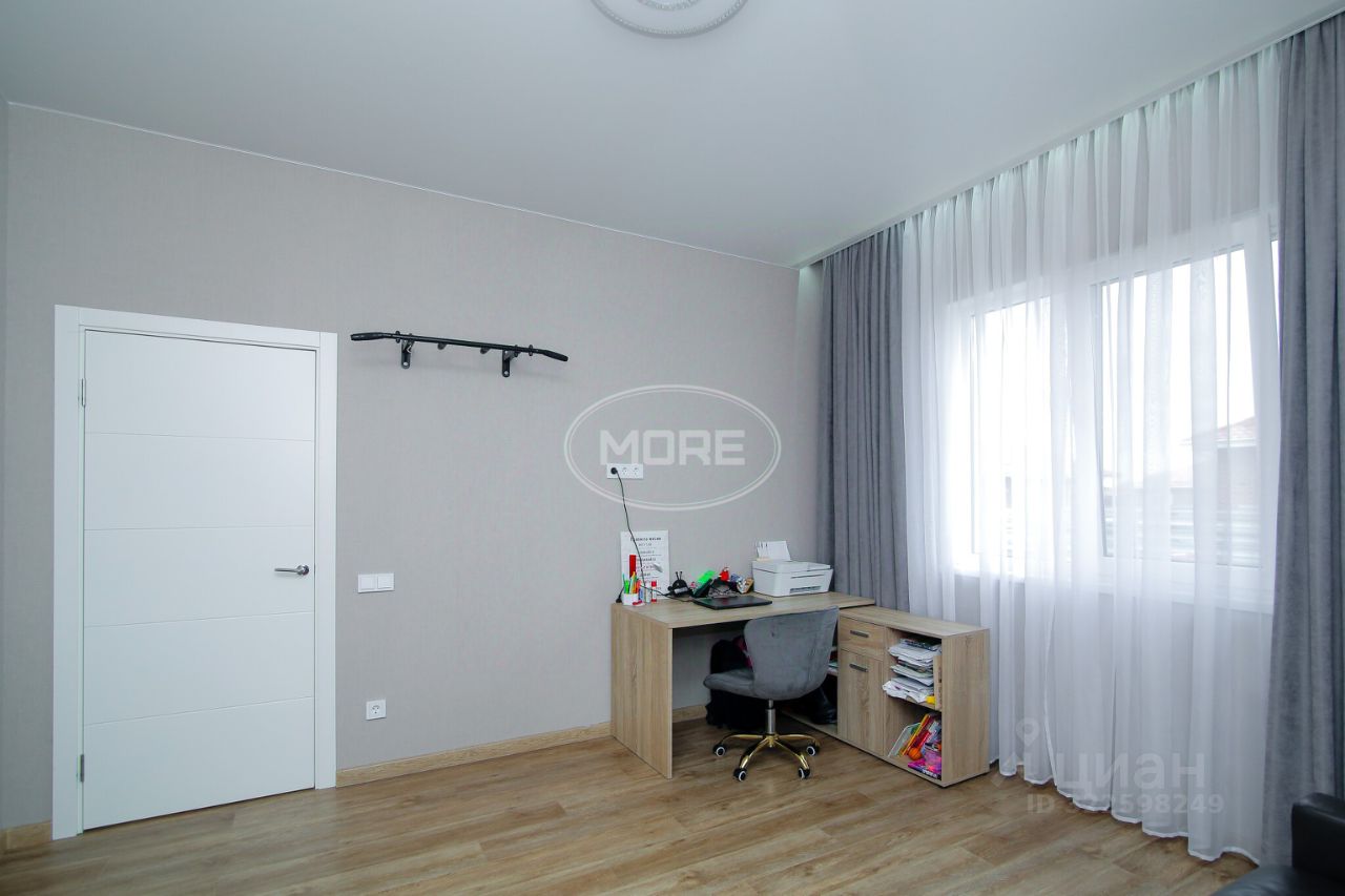 В доме сделан дизайнерский ремонт, кухня гостиная оснащена гарнитуром, бытовой техникой, из кухни гостиной выход на террасу с панорамным остеклением с трех сторон и видом на беседку с откатными дверьми (с москитными сетками). Две спальни, одна из них мастер-спальня со своим санузлом с душевой кабиной, выходом на террасу, так же имеется кабинет, который в дальнейшем можно переделать в спальню. Санузел совмещен в кафеле. Напольное покрытие кварц винил и ламинат. Имеется вместительна гардеробная для хранения вещей.
