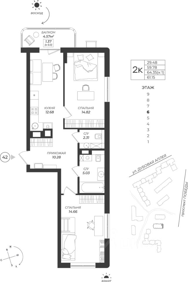 Общая площадь61,15 м2