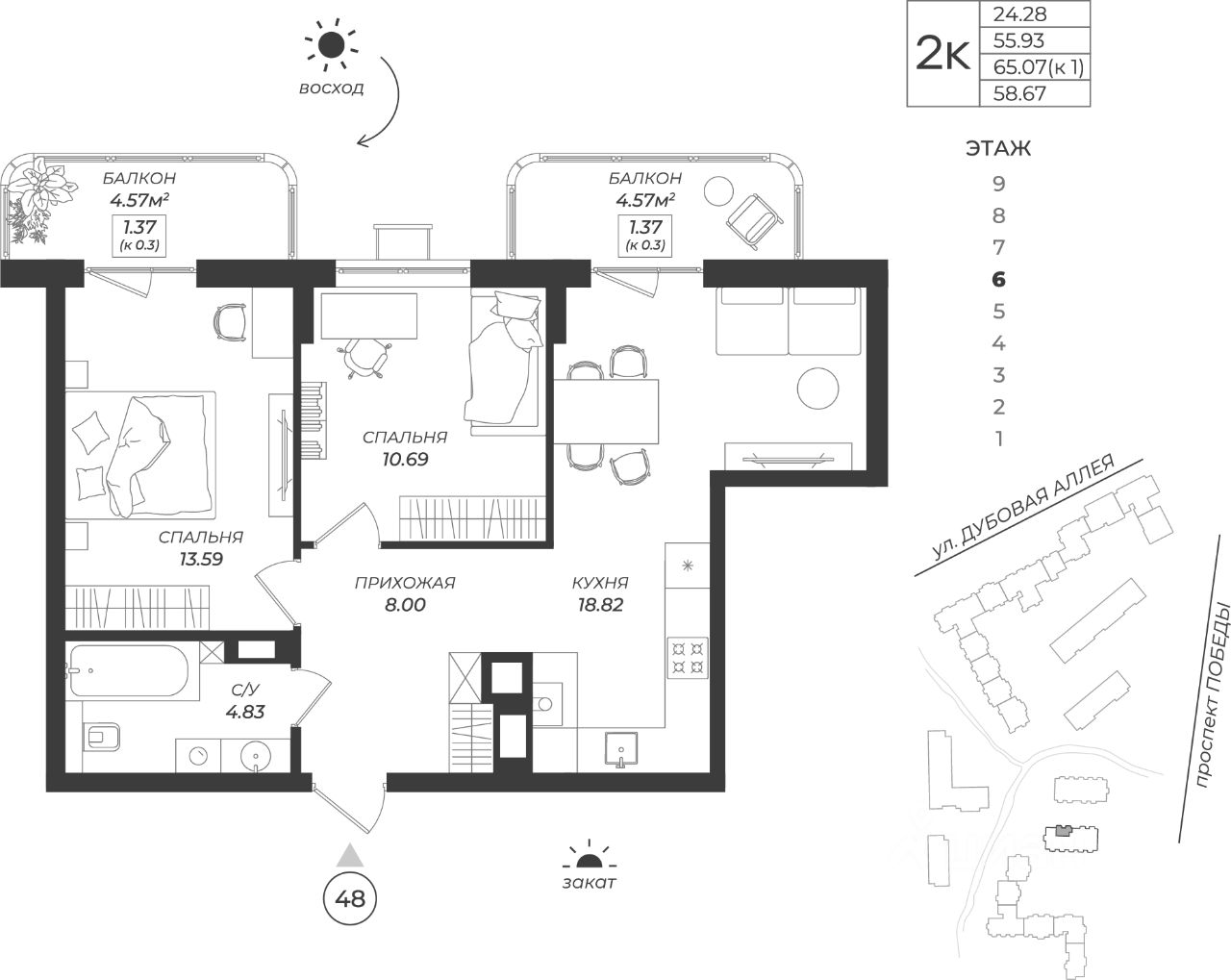 Общая площадь58,67 м2