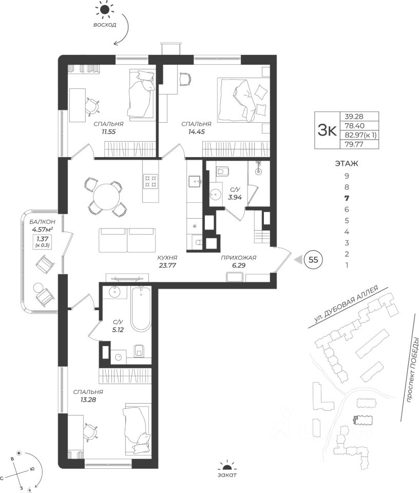 Общая площадь79,77 м2