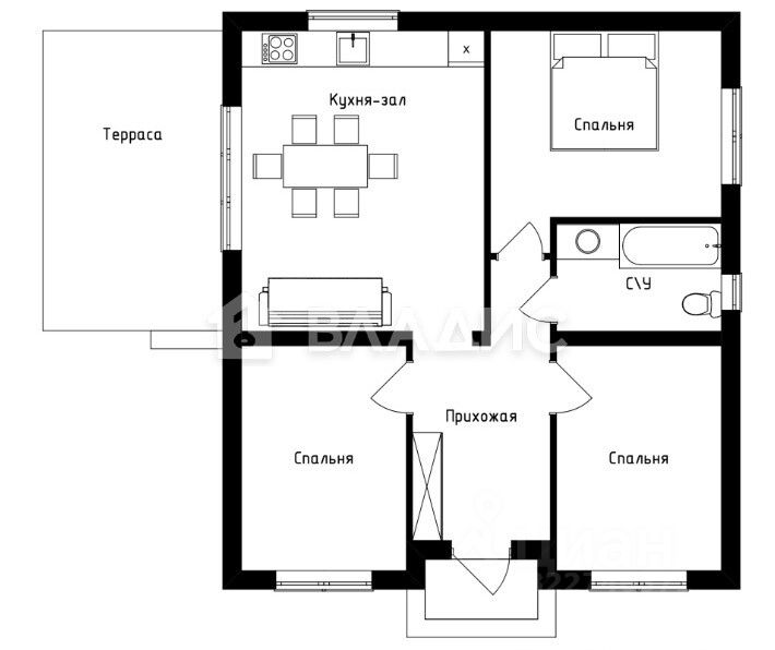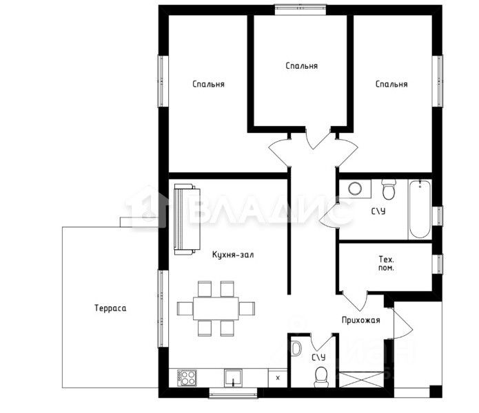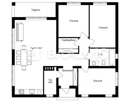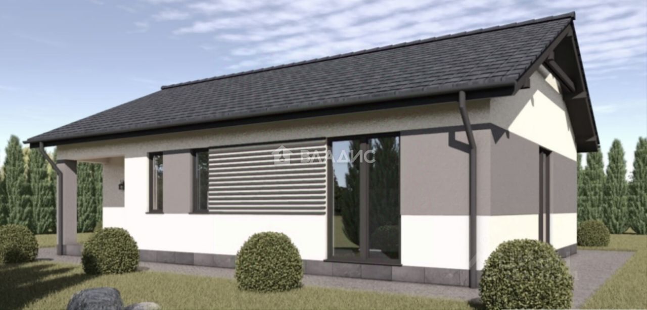 О доме: 2025 г., 70 м², 1 этаж. 2 комнаты (14+16, м²), кухня-гостиная 27,5 м² с террасой, с/узел 5.5 м², прихожая-коридор 7, м². Фундамент: ленточный с плитой. Стены: газосиликат (утепление). Перекрытия: деревянные. Кровля: металлочерепица. Предчистовая отделка ''white box'', дорогие стеклопакеты.