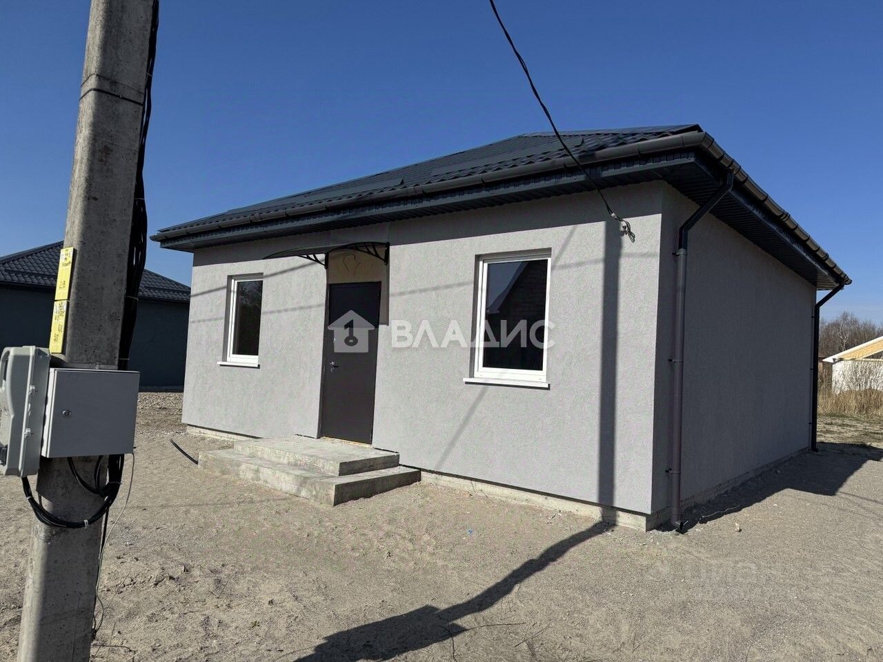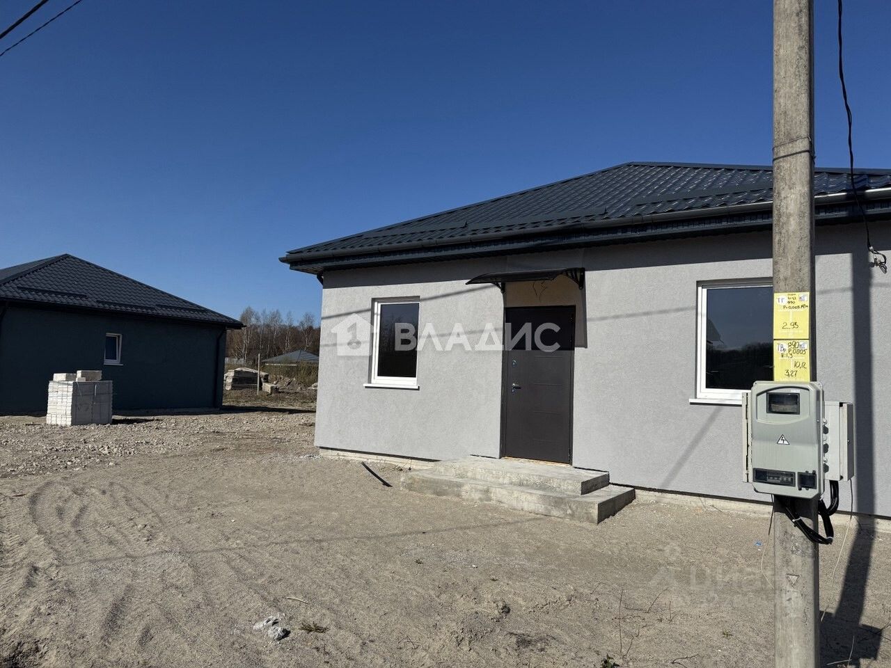 Характеристики дома: Площадь дома 65 м2 Планировка: кухня-гостиная 18,5 кв. м, 2 комнаты-12,2 и 12,2 кв.м , совмещённый санузел, холл. Высота потолка 3 м. Материал стен газосиликатный блок. Фундамент железобетонный, монолитный (лента + плита.) Перекрытия деревянные балки, пароизоляционная пленка, минеральная вата. Древесина обработана противогрибковыми средствами. Кровля металлическая черепица, смонтирована ливневая система. Год постройки 2025 г. Состояние серый ключ. Коммуникации в дом заведено электричество,предусмотрены закладные для воды и водоотведения.