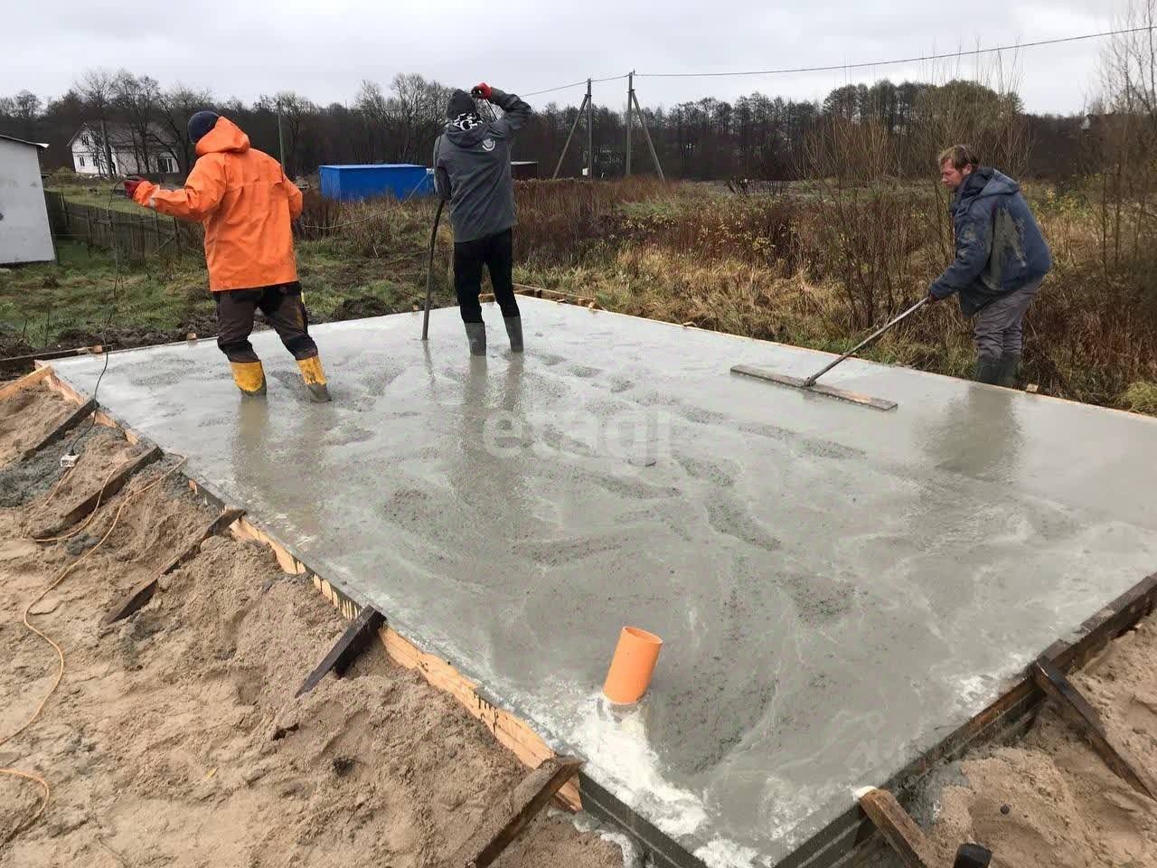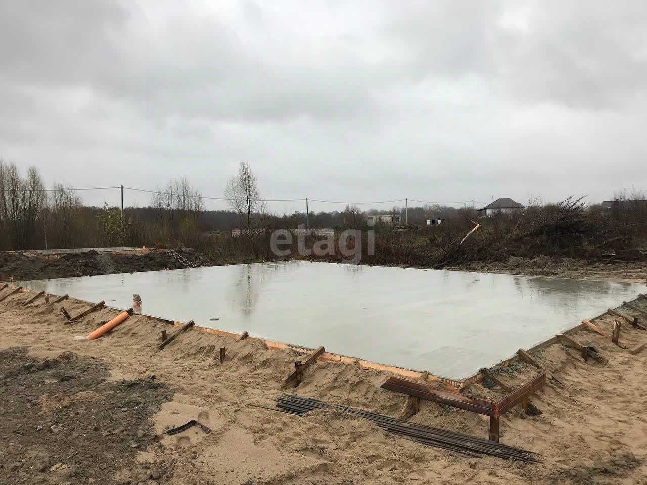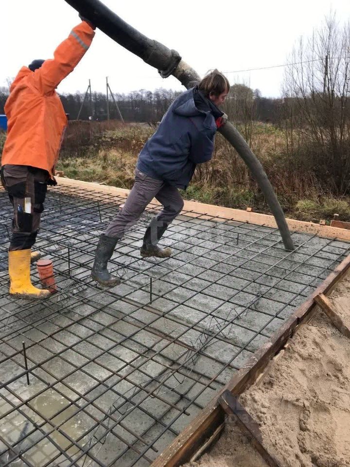 На участке залит фундамент 300 мм с арматурой 12 мм для дома 10 м на 14.4 м и для бани 6 м на 4 м. Марка бетона М300.
