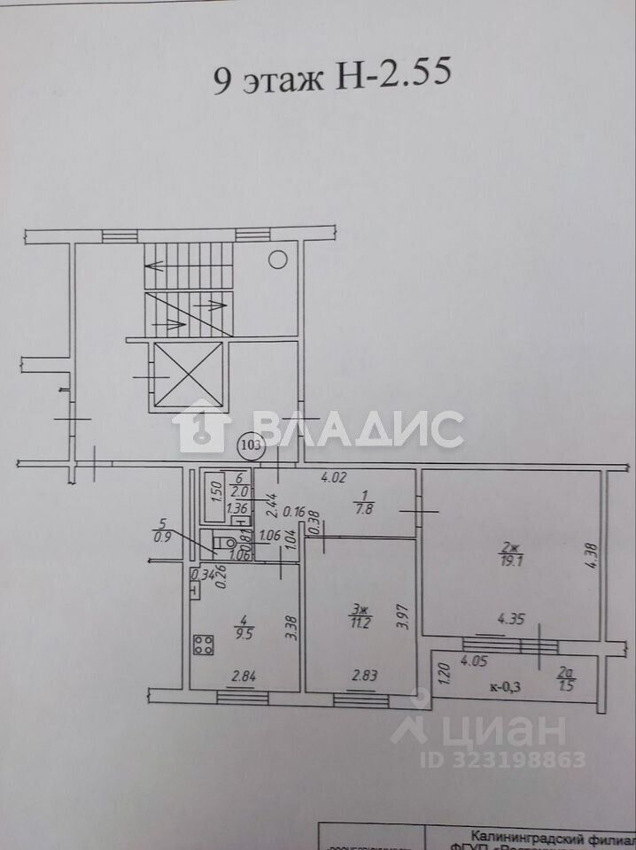 В квартире два изолированных жилых помещения с площадями 19,1 кв. м и 11,2 кв. м, кухня — 9,5 кв. м. Есть лоджия, где можно наслаждаться видом на улицу и двор. Окна выходят как на улицу, так и во двор.