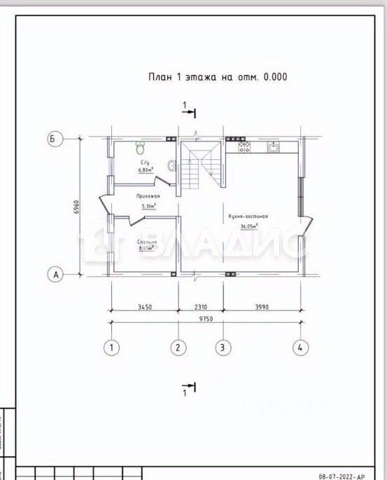 Поэтажная планировка: I-й этаж: прихожая, санузел, техпомещение, спальная комната- 9кв.м (кабинет), просторная гостиная- кухня-столовая -36 кв.м с панорамным остекленением и выходом на свою территорию.