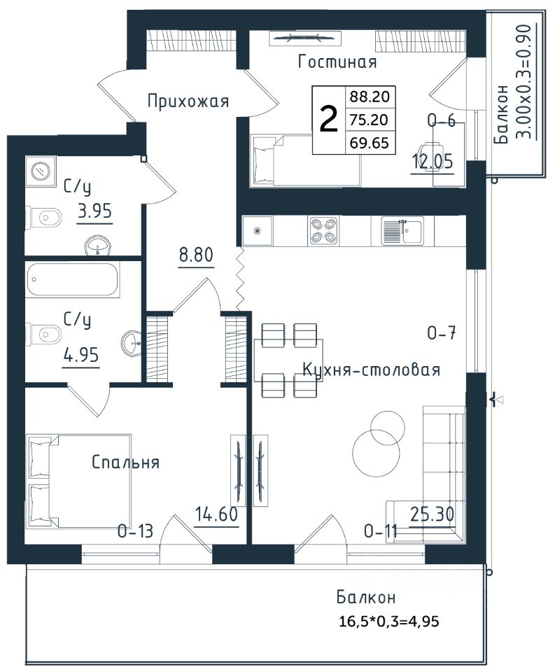 Продаётся 2-комнатная квартира в строящемся доме (Дом 2), срок сдачи: II-кв. 2026, общей площадью 88.2 кв.м., на 2 этаже. Новый жилой комплекс ''Янтарные Сезоны'' от Группы компаний ''Модуль-Стройград'' расположен по адресу: Калининградская обл., пгт Янтарный, ул. Советская.