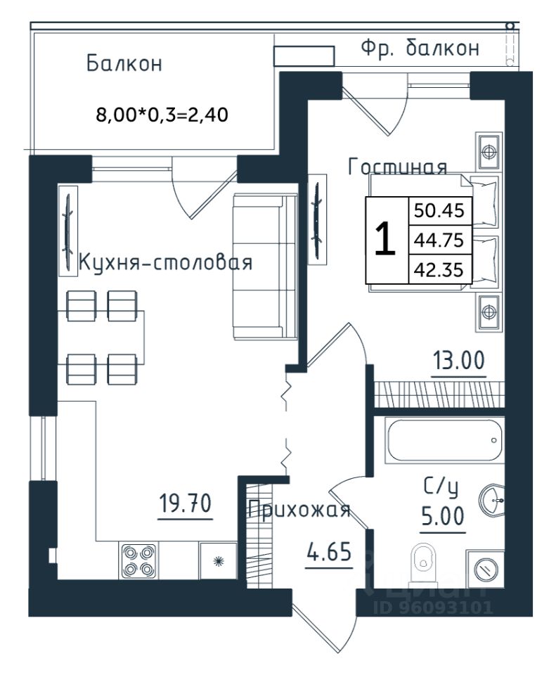 Продаётся 1-комнатная квартира в строящемся доме (Дом 3), срок сдачи: II-кв. 2026, общей площадью 50.45 кв.м., на 5 этаже. Новый жилой комплекс ''Янтарные Сезоны'' от Группы компаний ''Модуль-Стройград'' расположен по адресу: Калининградская обл., пгт Янтарный, ул. Советская.