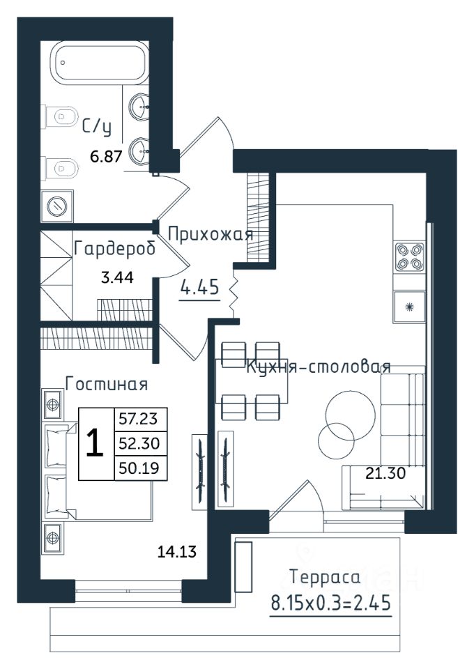 Продаётся 1-комнатная квартира в строящемся доме (Дом 3), срок сдачи: II-кв. 2026, общей площадью 57.23 кв.м., на 1 этаже. Новый жилой комплекс ''Янтарные Сезоны'' от Группы компаний ''Модуль-Стройград'' расположен по адресу: Калининградская обл., пгт Янтарный, ул. Советская.