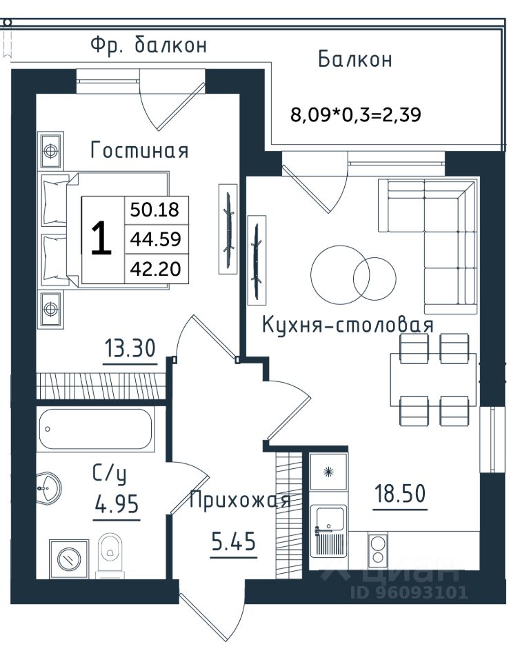 Продаётся 1-комнатная квартира в строящемся доме (Дом 2), срок сдачи: II-кв. 2026, общей площадью 50.18 кв.м., на 5 этаже. Новый жилой комплекс ''Янтарные Сезоны'' от Группы компаний ''Модуль-Стройград'' расположен по адресу: Калининградская обл., пгт Янтарный, ул. Советская.