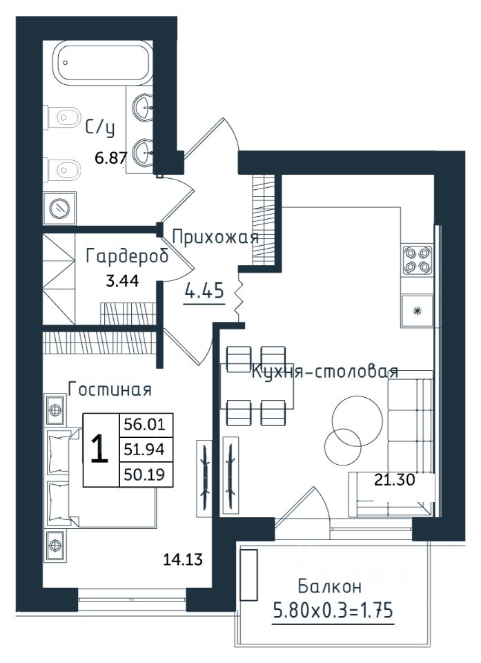 Продаётся 1-комнатная квартира в строящемся доме (Дом 3), срок сдачи: II-кв. 2026, общей площадью 56.01 кв.м., на 4 этаже. Новый жилой комплекс ''Янтарные Сезоны'' от Группы компаний ''Модуль-Стройград'' расположен по адресу: Калининградская обл., пгт Янтарный, ул. Советская.