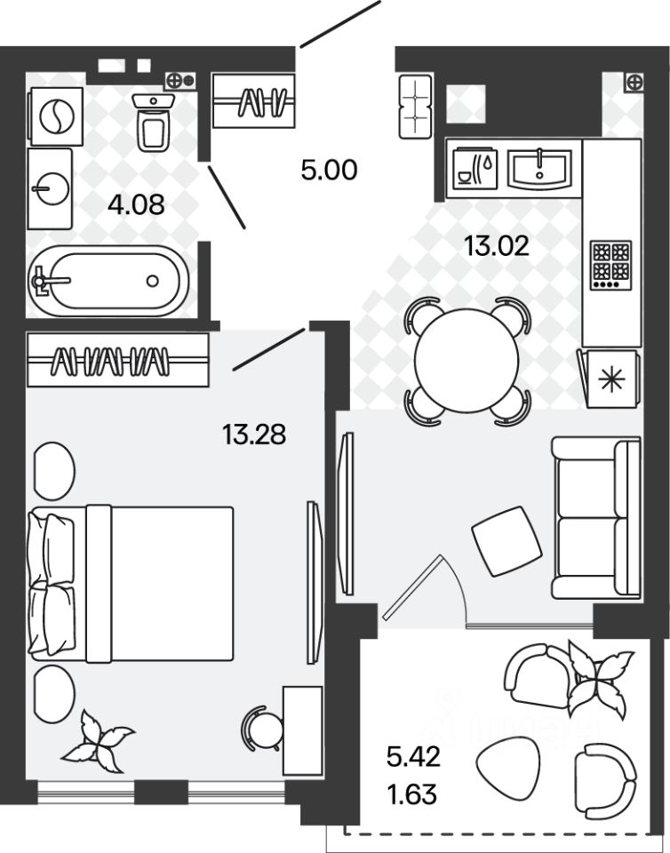 Жилая площадь13,3 м2