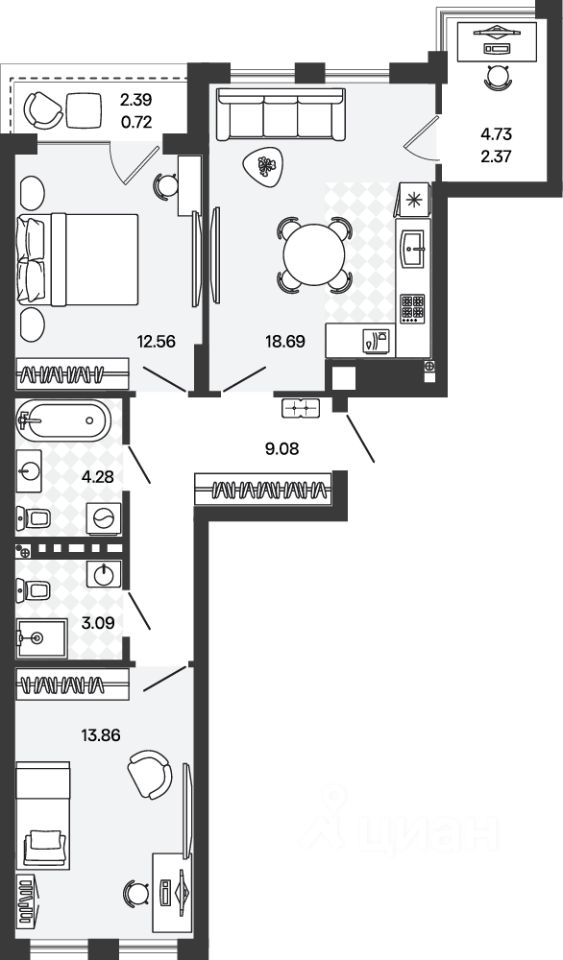 Жилая площадь26,4 м2