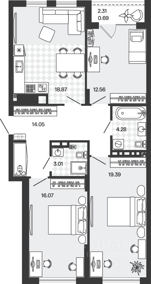 Общая площадь88,92 м2