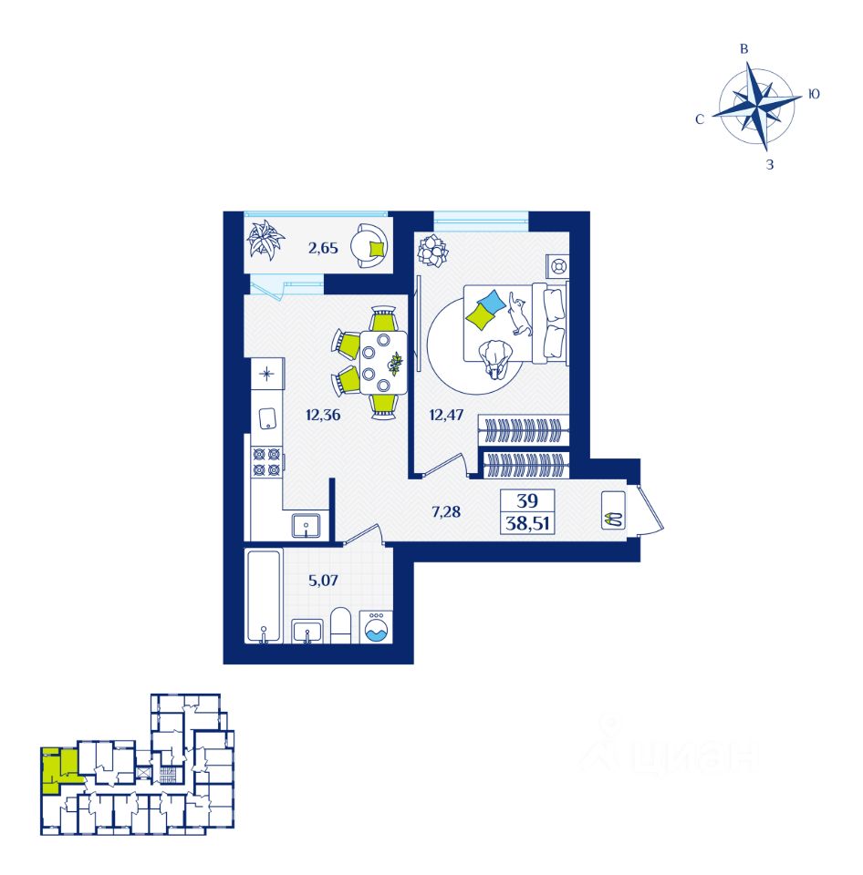 Общая площадь38,51 м2