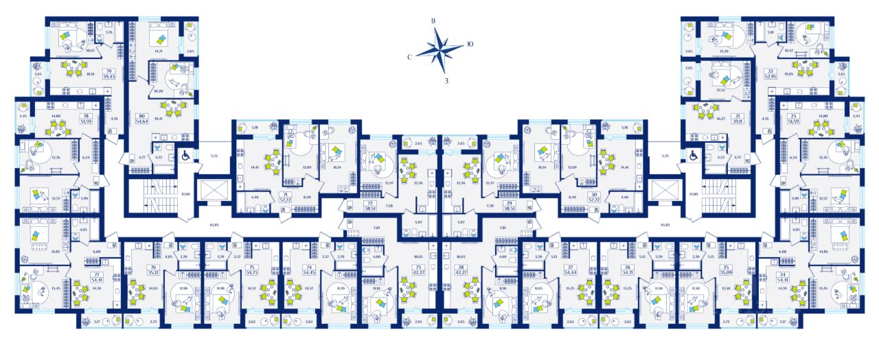 -Защитные ниши под кондиционеры на фасаде для каждой квартиры.