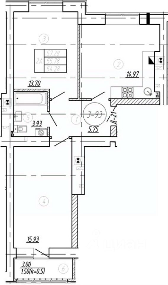 Общая площадь55,78 м2