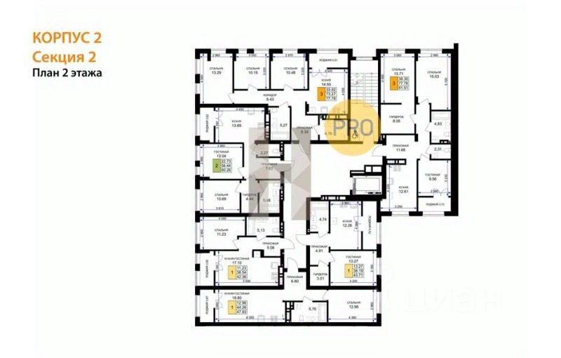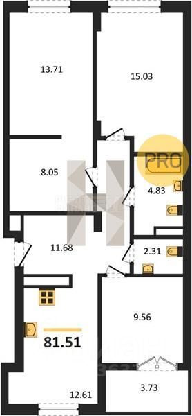 продам 3-к, Героя России Катериничева, 2 корп. 411 398 800 ₽