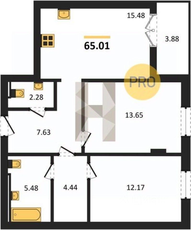 Общая площадь65,01 м2