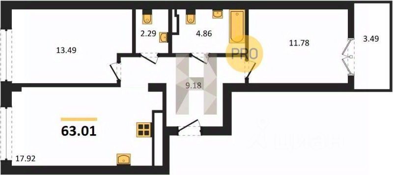 Общая площадь63,01 м2