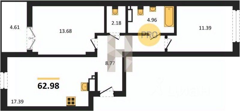 Общая площадь62,98 м2