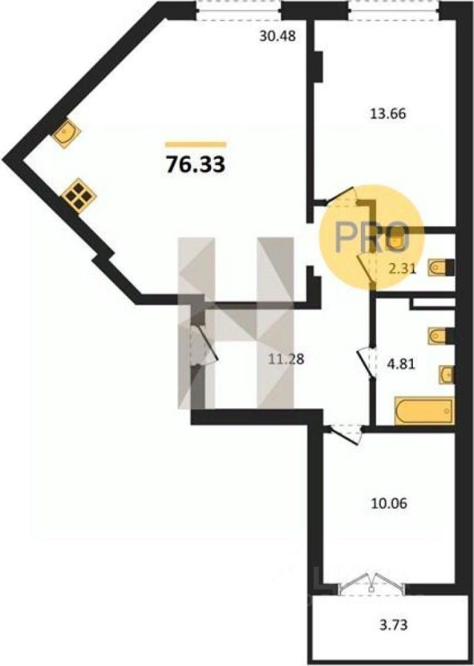 Общая площадь76,33 м2