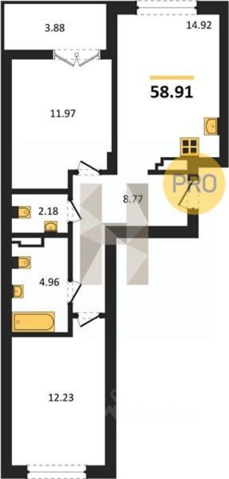 Общая площадь58,91 м2