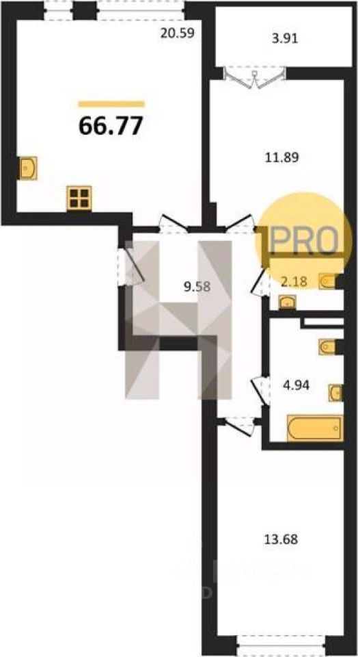 Общая площадь66,77 м2