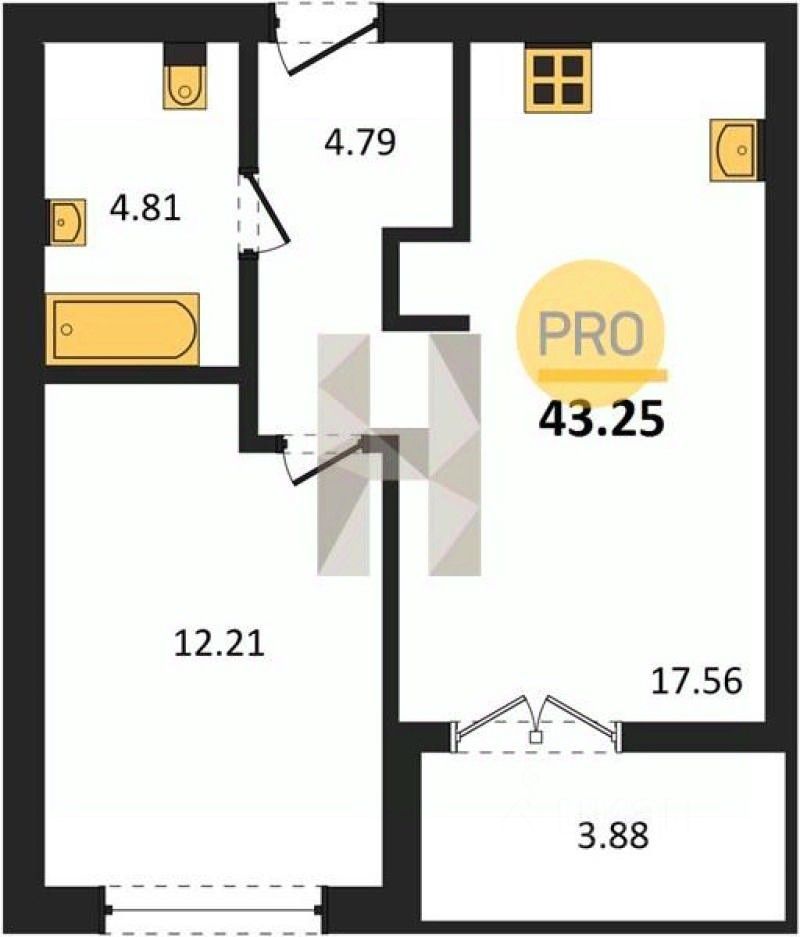 Общая площадь43,25 м2