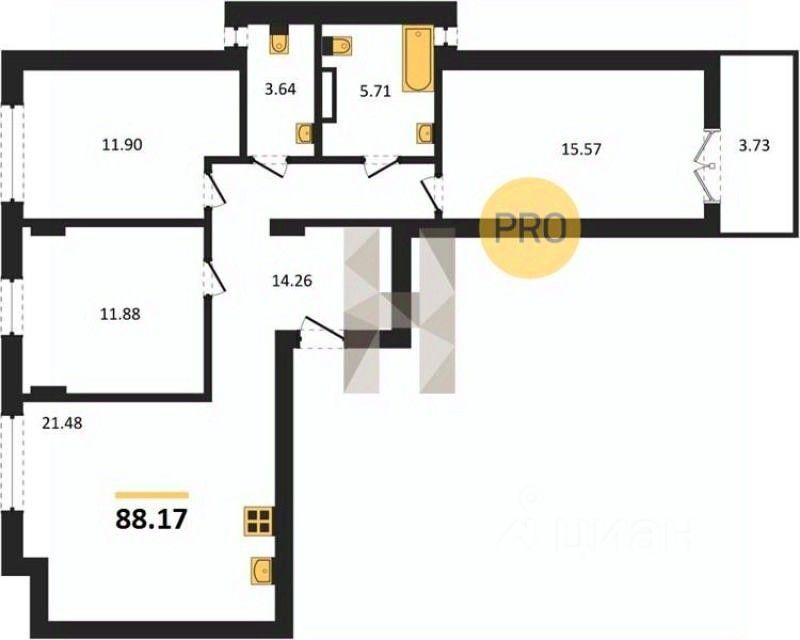 Общая площадь88,17 м2