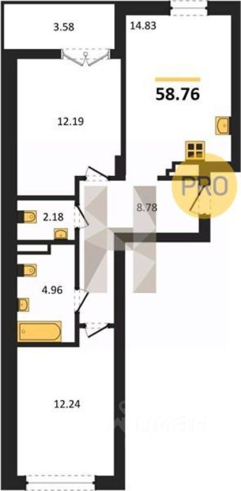 Общая площадь58,76 м2