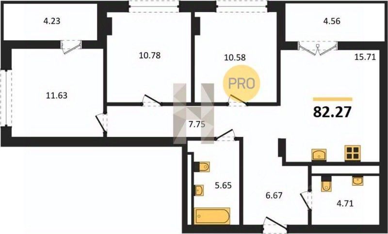 Общая площадь82,27 м2