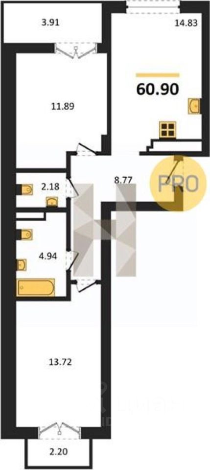 Общая площадь60,9 м2