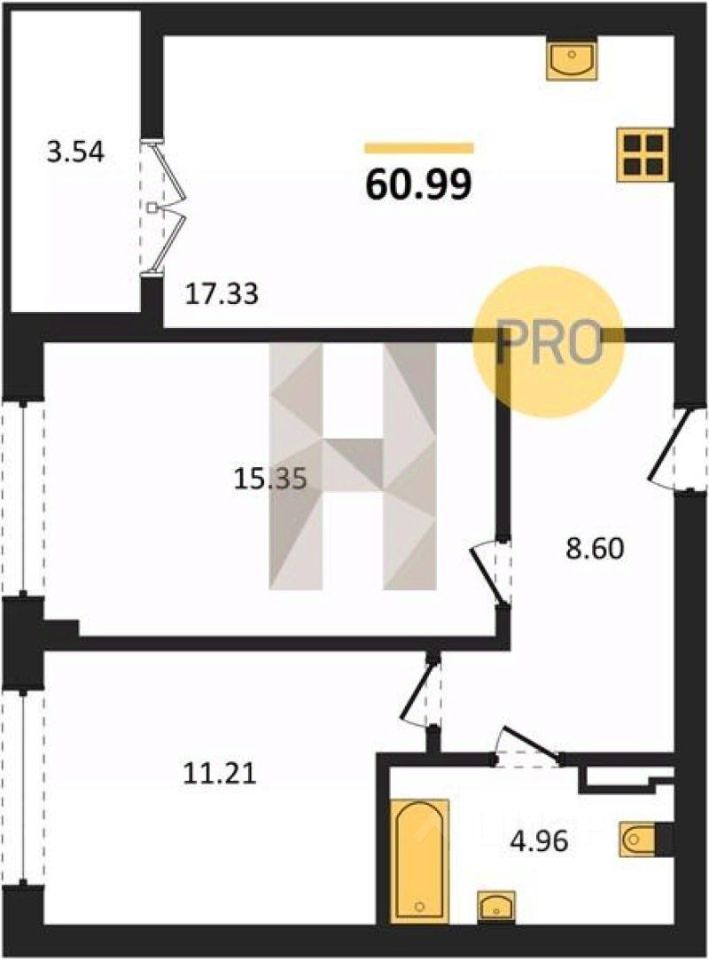 Общая площадь60,99 м2