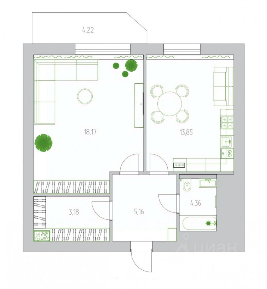 Квартира продается с пакетом отделки и комплектации под ключ: отделочные работы и комплектация будут проведены по разработанному под ваш сценарий жизни дизайн-проекту, полная комплектация мебелью и бытовой техникой от проверенных брендов, а также товары для дома и декор. Срок выполнения работ - 60 дней.