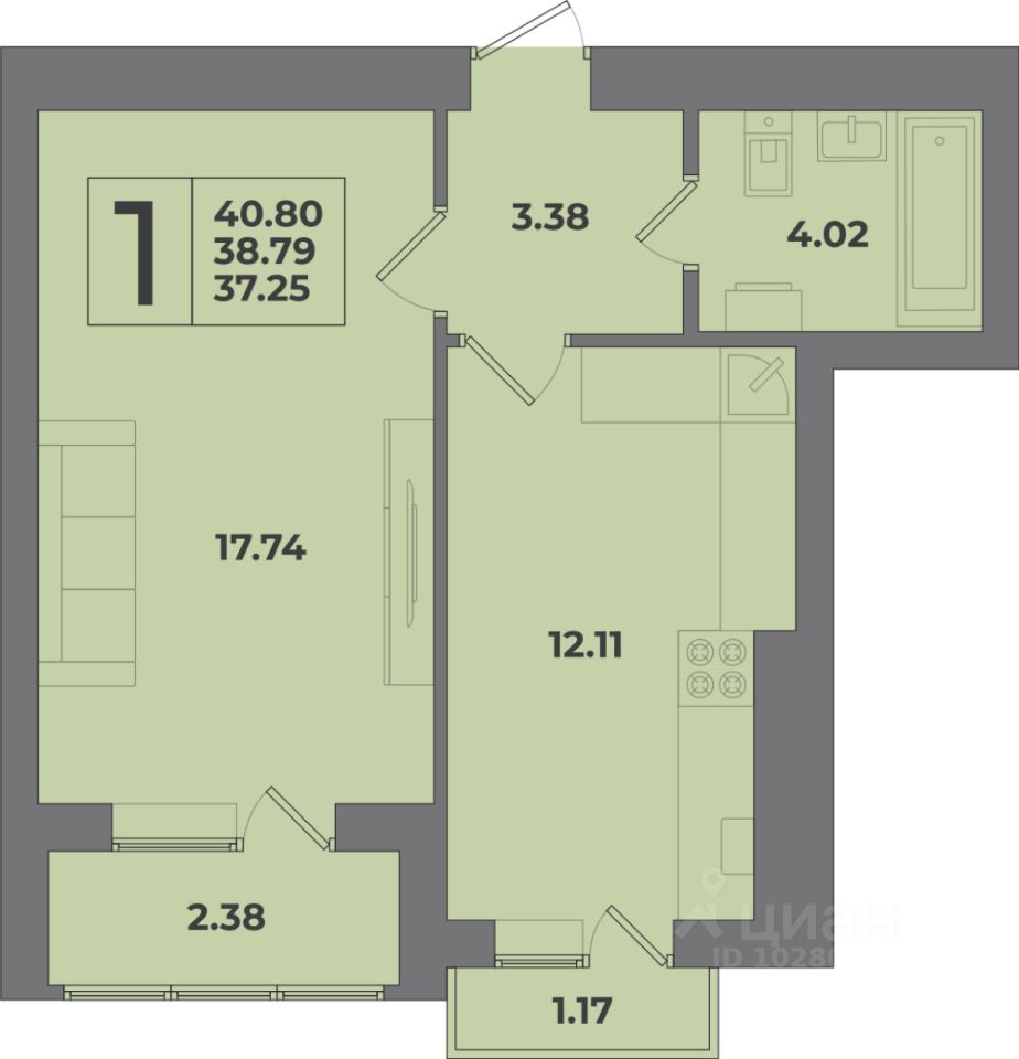 Общая площадь40,8 м2