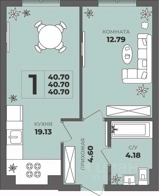Продаётся 1-комнатная квартира в строящемся доме (Дом 2), срок сдачи: II-кв. 2027, общей площадью 40.7 кв.м., на 1 этаже. ЖК ''ГРИНВУД''.