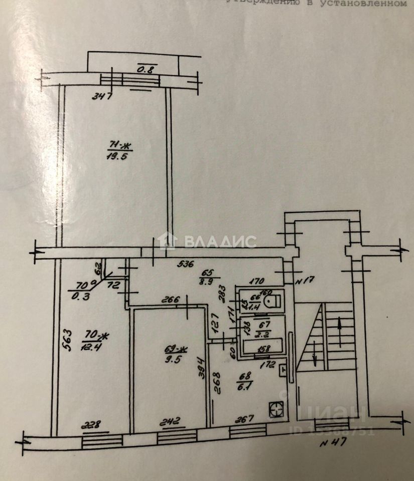 ТЕХНИЧЕСКИЕ ХАРАКТЕРИСТИКИ: + 5-ый этаж 5-тиэтажного дома + центральное отопление + площадь 60,3 кв.м. + площадь комнат (19,5+12,4+9,5) + кухня 6,1 кв.м. + коридор 8,9 кв.м. + окна выходят на обе стороны дома + с/у раздельный + балкон