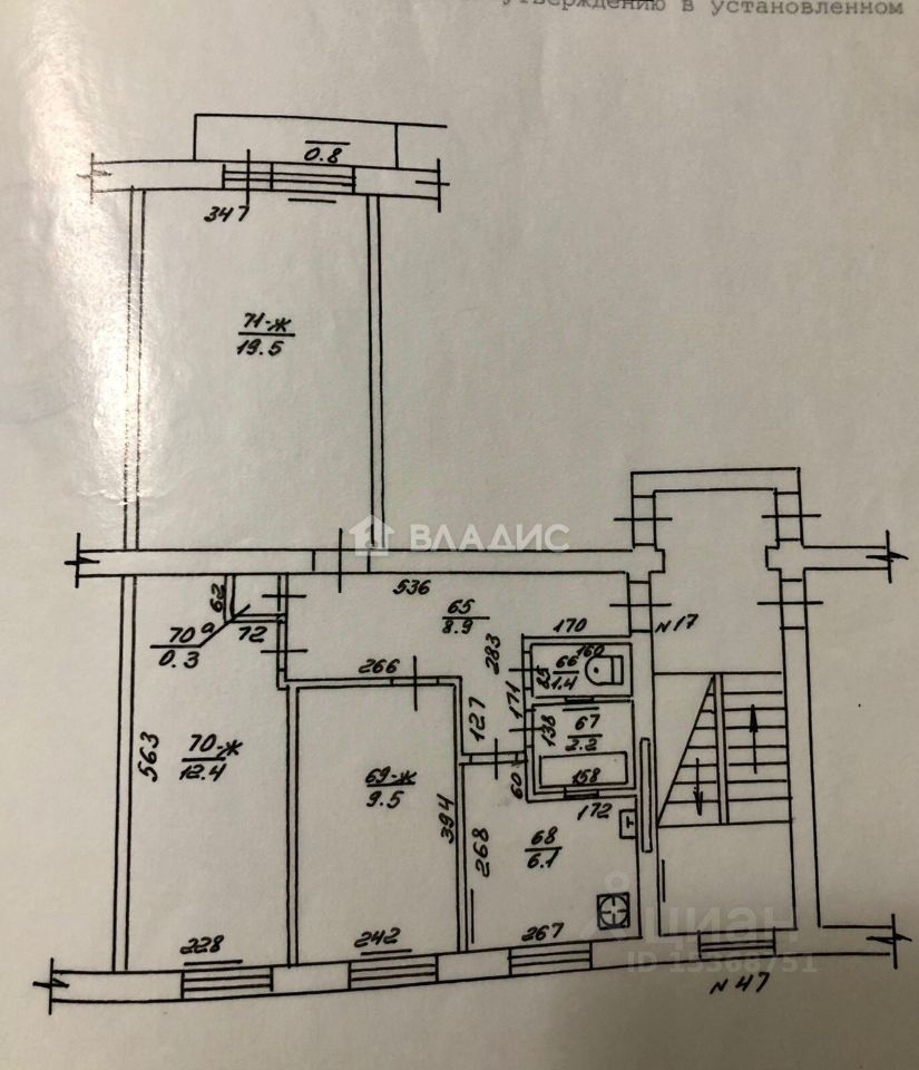 ТЕХНИЧЕСКИЕ ХАРАКТЕРИСТИКИ: + 5-ый этаж 5-тиэтажного дома + центральное отопление + площадь 60,3 кв.м. + площадь комнат (19,5+12,4+9,5) + кухня 6,1 кв.м. + коридор 8,9 кв.м.
