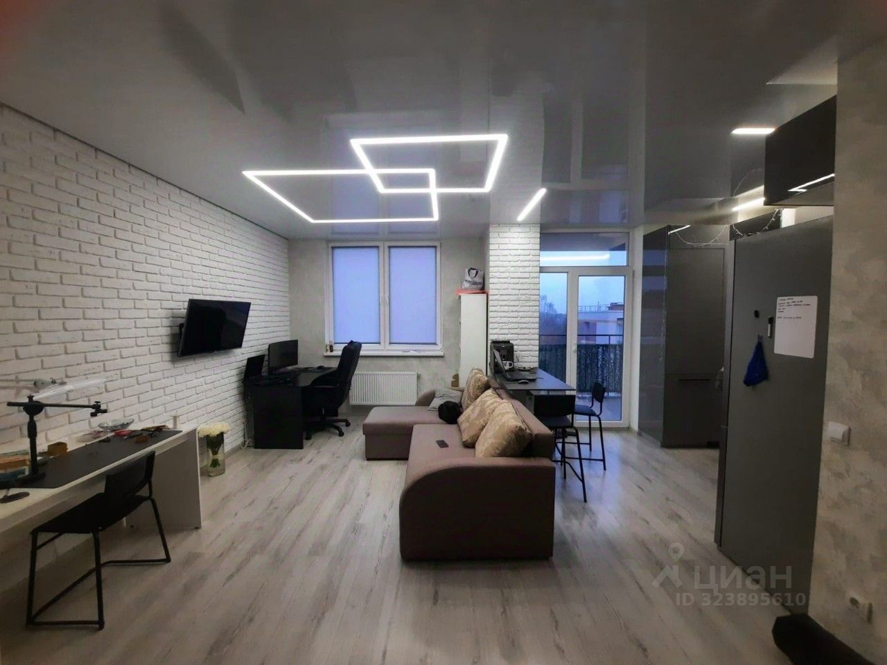 Стены- обои и инсталяция '' белый кирпич''.