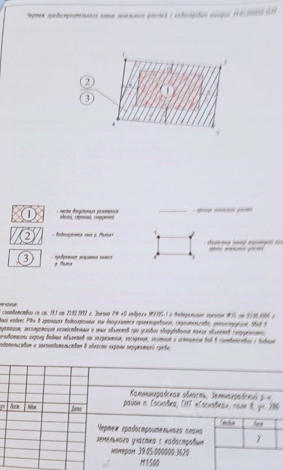 Кадастровый номер: 39:05:000000:3620, ГПЗУ на руках (см.схему в фото), Назначение участка: для садоводства, разрешено строительство жилого дома, Можно оформить постоянную регистрацию (прописку) после постройки дома. Участок с идеальными подъездными путями — широкая дорога, круглогодичный проезд, Прямой выезд на трассу,